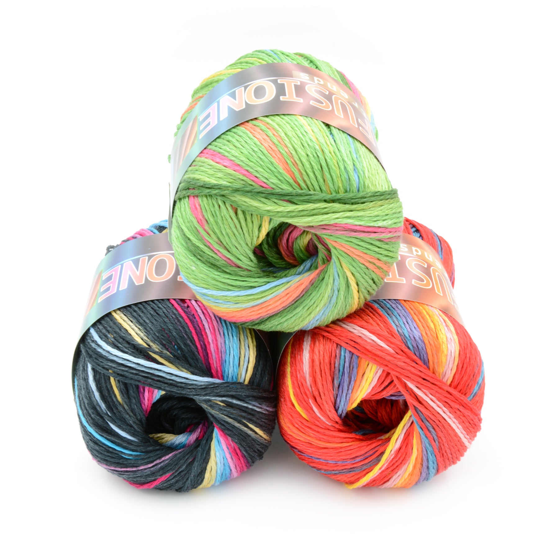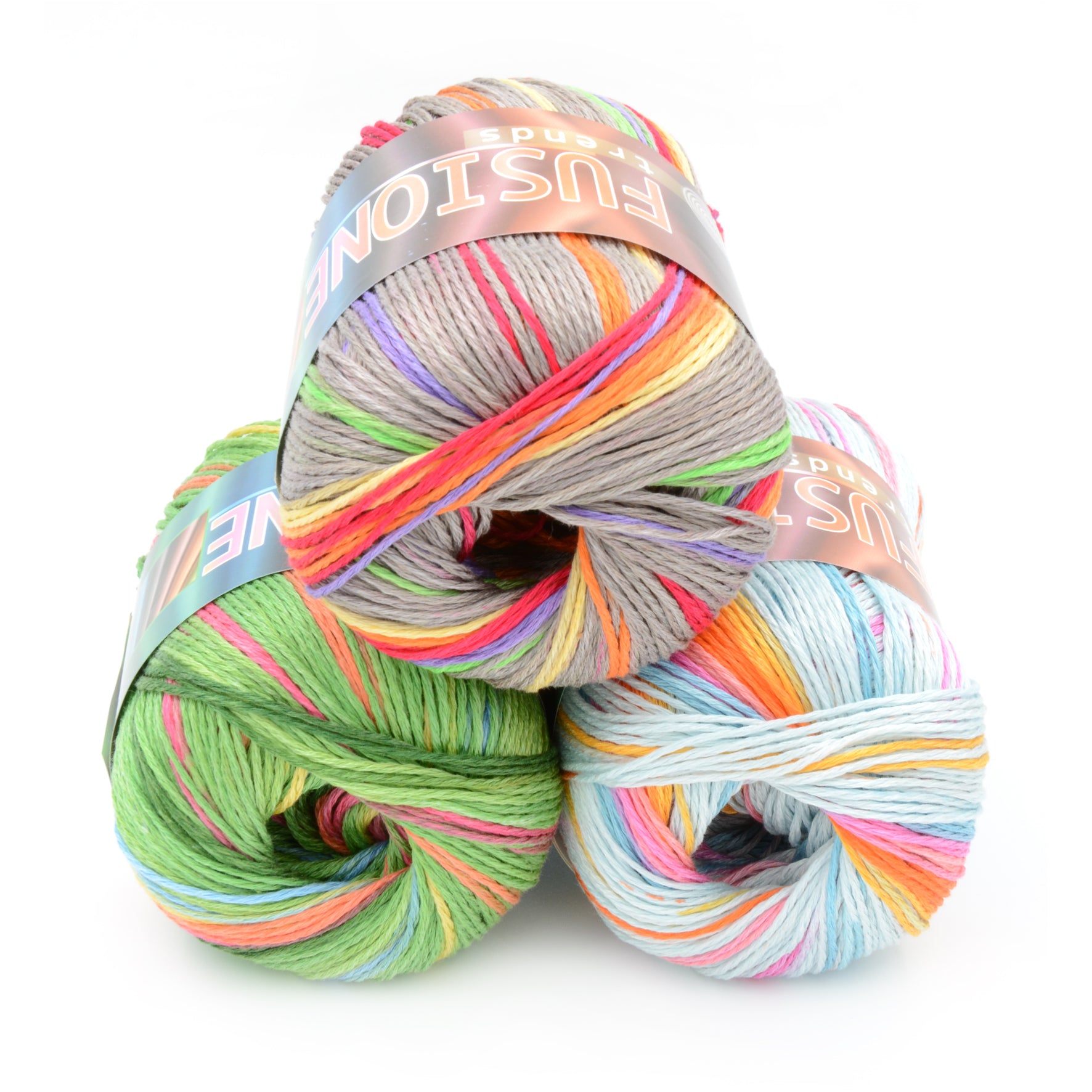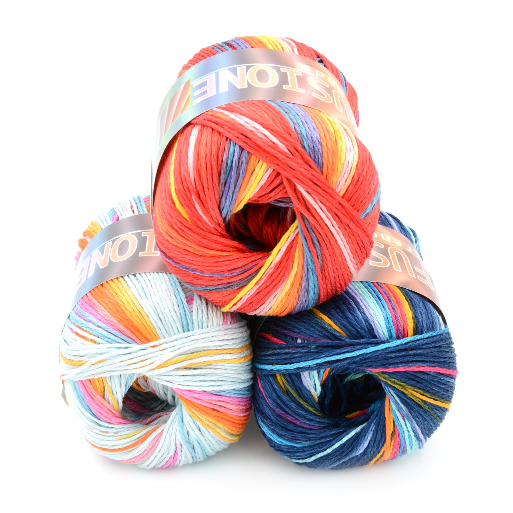 Un filo di cotone 100% tinto con una tecnica inedita. Le sue sfumature si fondono con strisce separate su base tinta unita. Due le tonalità proposte su cinque basi colorate.