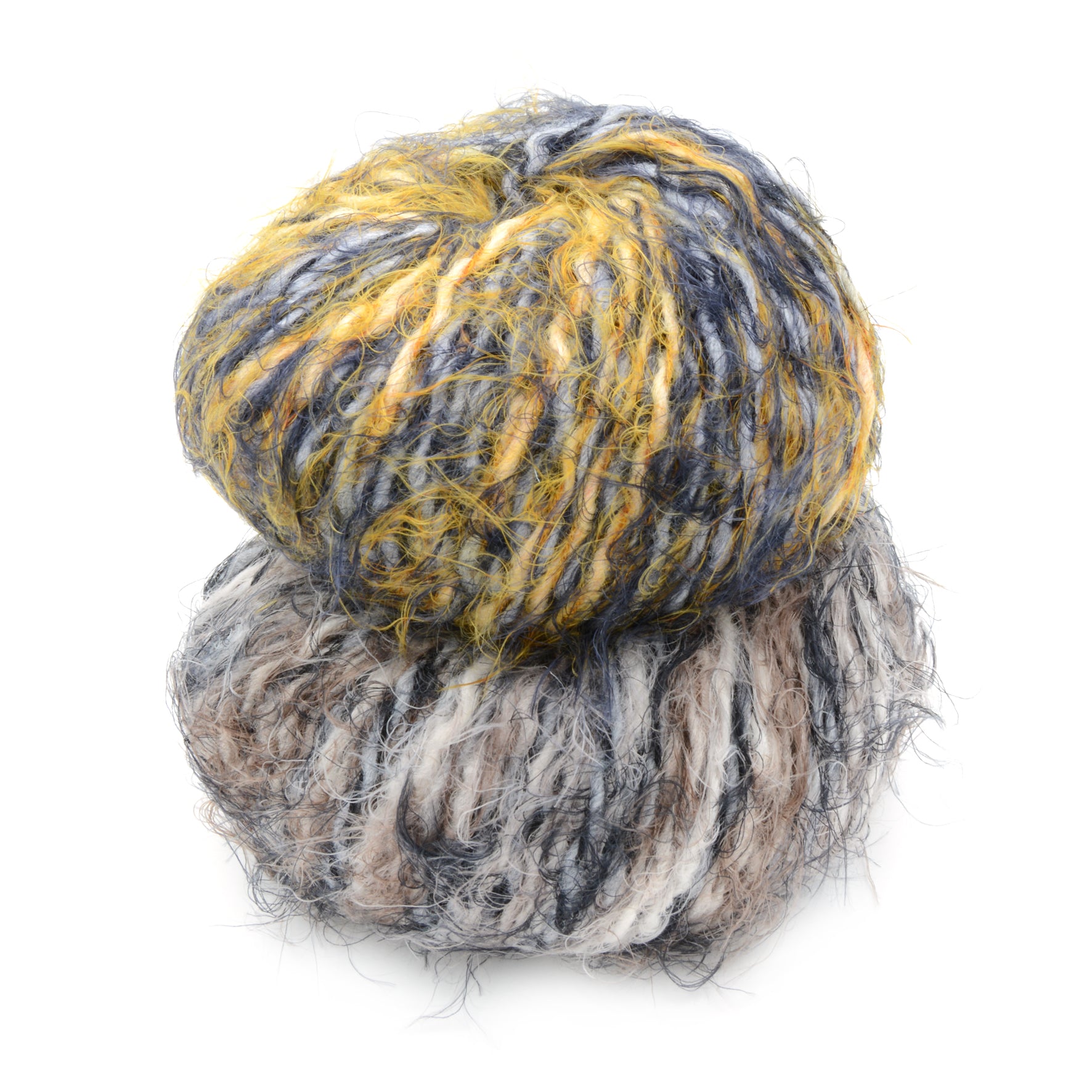 Filati per maglieria più spessi da una miscela di alpino, acrilico, viscosa e nylon. L'alpaca dona al filato morbidezza e calore, la viscosa lucentezza. Colori classici e fluo, filati morbidi, per abiti, sciarpe, cappelli e accessori moda estremamente interessanti.