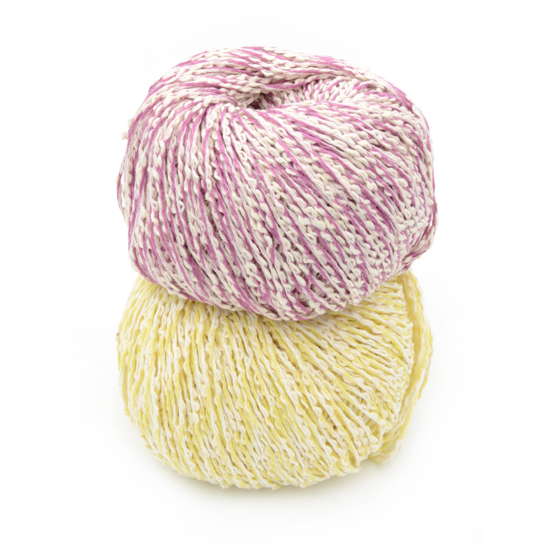 Cotone fantasia miscelato con filato poliacrilico.